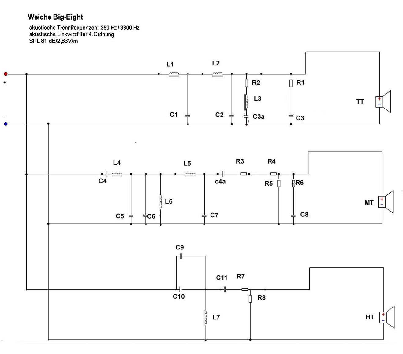 Im Ergebnis ergab sich die folgende Frequenweiche für die